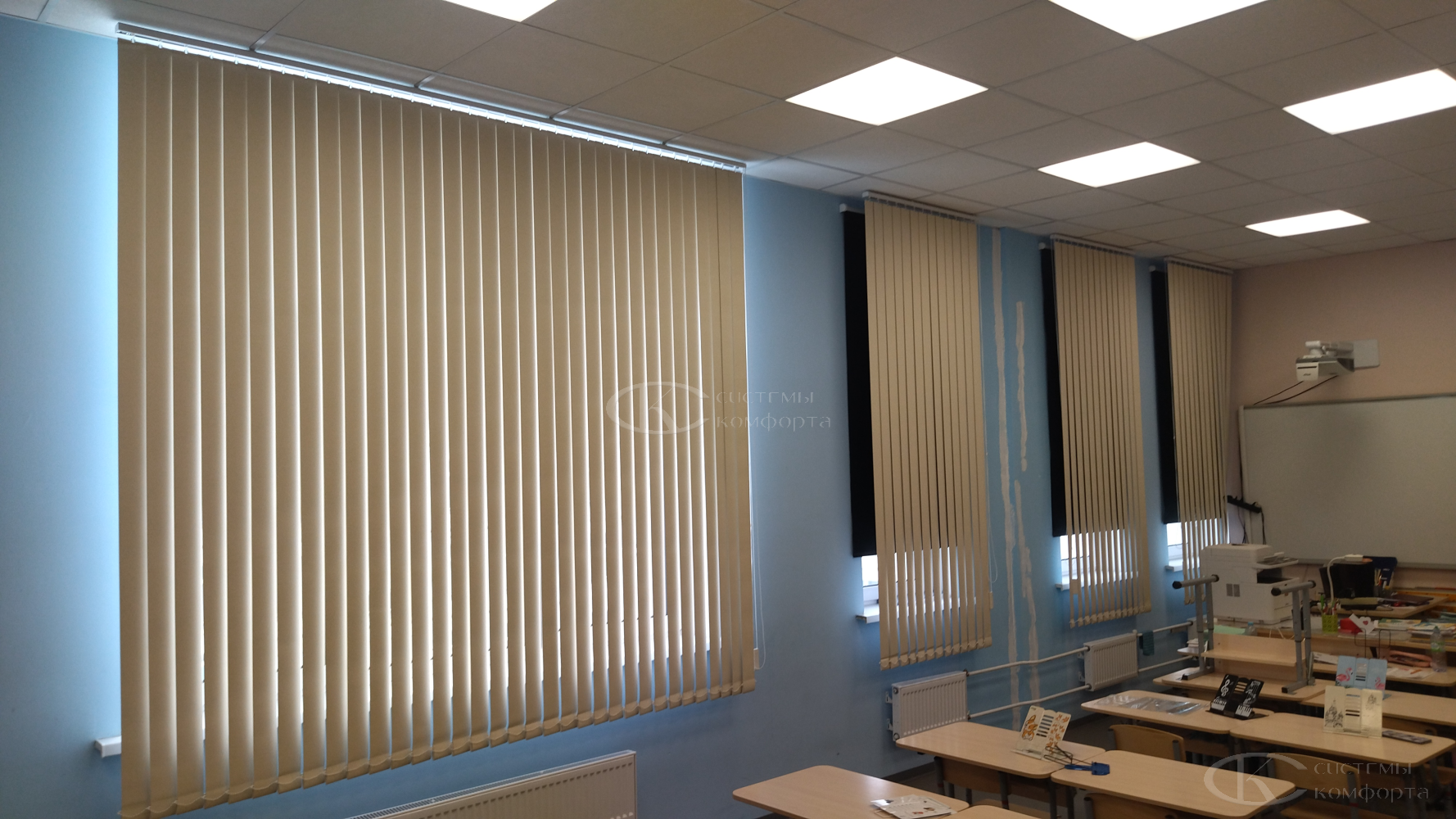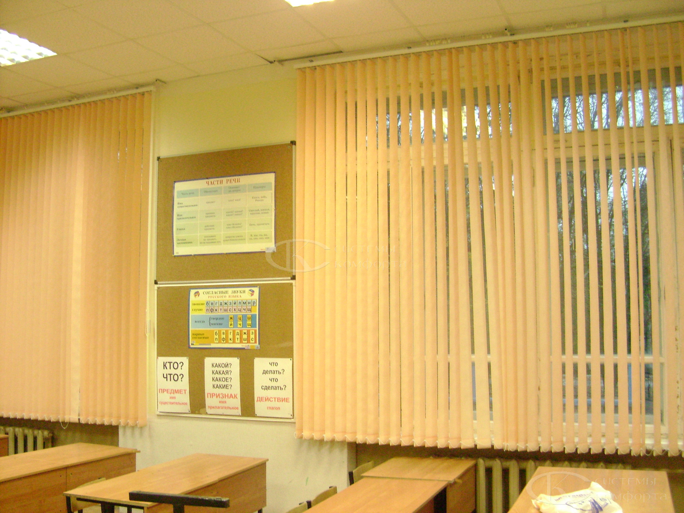 Вертикальные жалюзи часто используют в школе по причине функциональности и экономичности. Такие жалюзи позволяют быстро регулировать световой поток, но они же чаще всего и ломаются. Из-за неправильной эксплуатации тканевые ленты и пластиковые элементы путаются и обрываются. Особенно часто ломаются при проветривании помещения. Если неправильно выбрать высоту изделия, то они будут сметать грязь с пола или с подоконника.