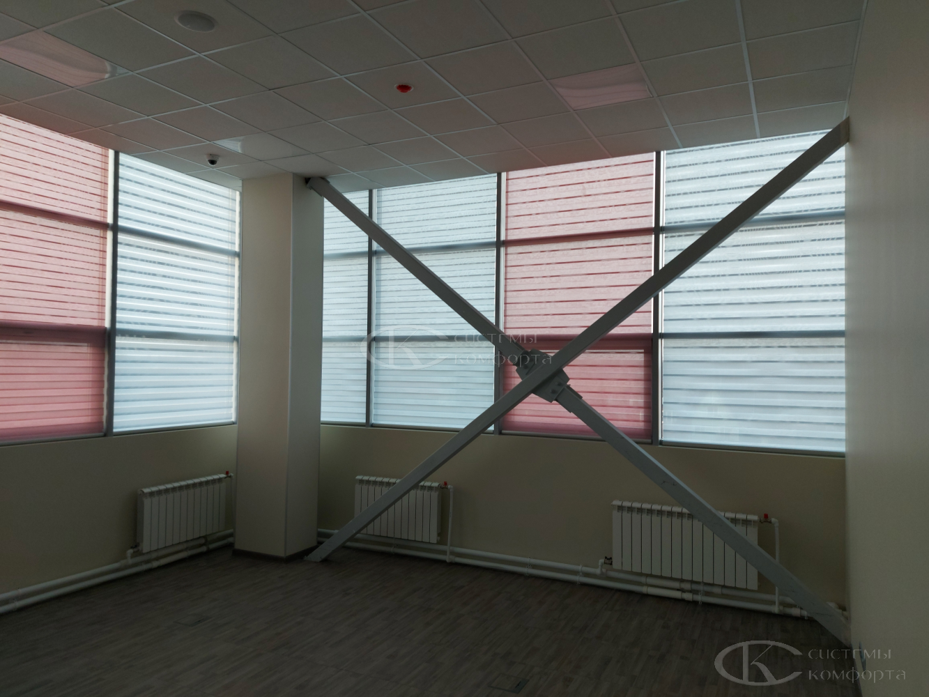 Рулонные шторы такой модификации удачно подойдут для школы, актового зала и кабинетов дирекции. Они представляют собой полотно, которое состоит из перемежающихся полос прозрачной и плотной структуры. При передвижении шторы полосы сдвигаются относительно друг друга. Так получается либо глухое полотно, либо с просветами. Материал не вызывают сложностей с уходом, достаточно протереть поверхность влажной губкой. Жалюзи представлены в различных цветах.